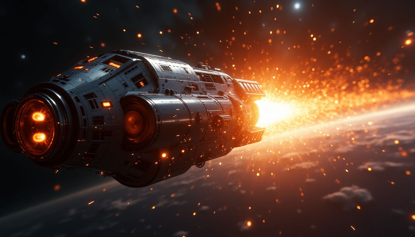 The ship sliced through the cosmos, light bending in its wake. Aleksei navigated the void with the deftness of a maestro directing a symphony, each calculated move furthering their mission to reposition the evacuation beacon.