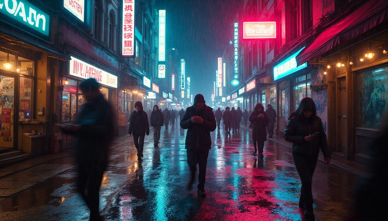 She sprinted through the rain-soaked streets of New Libera, her heart pounding like a drum. Parallels of reality blurred in the patter of drops cascading around her, merging past and present into an unsettling harmony. The electric glow of neon ads flickered overhead, touting the latest gadgets promising to fulfill the emptiness that lingered in the air. This was no ordinary night; it was a night of reckoning.
