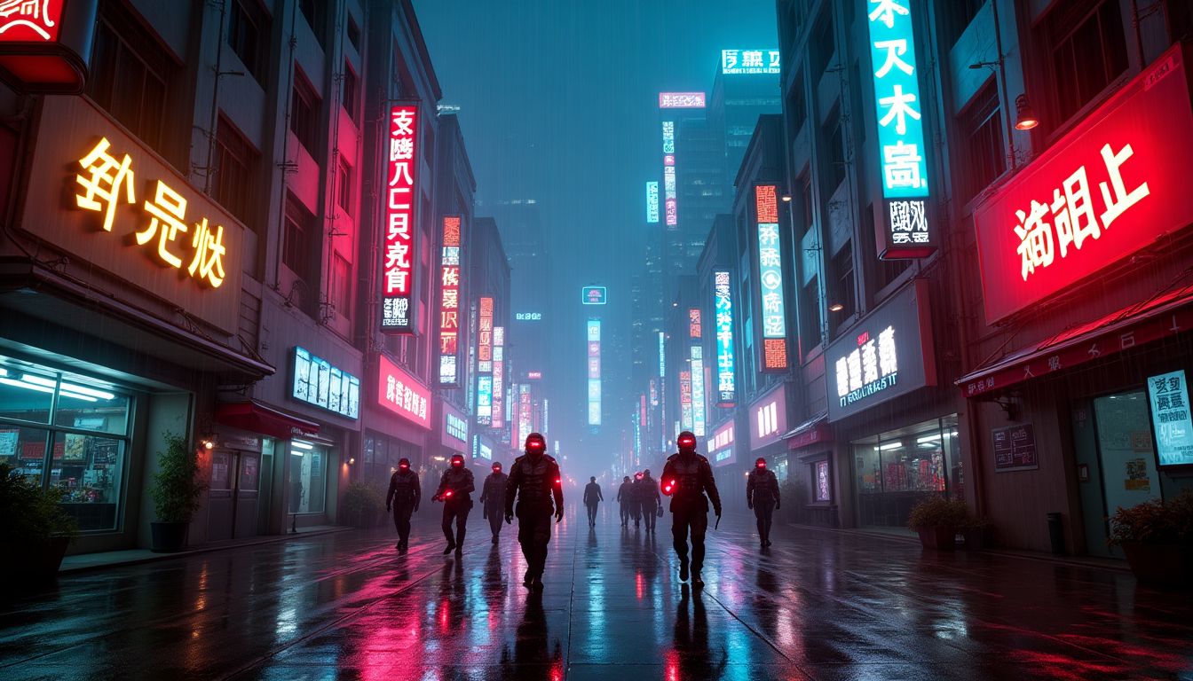 Kyle whipped around briefly, his boots skidding on the slick pavement. A squad of armored figures poured into the alley, their visors glowing an ominous red. The Corporate Retrieval Taskforce. He knew from experience they wouldn’t hesitate to shoot.