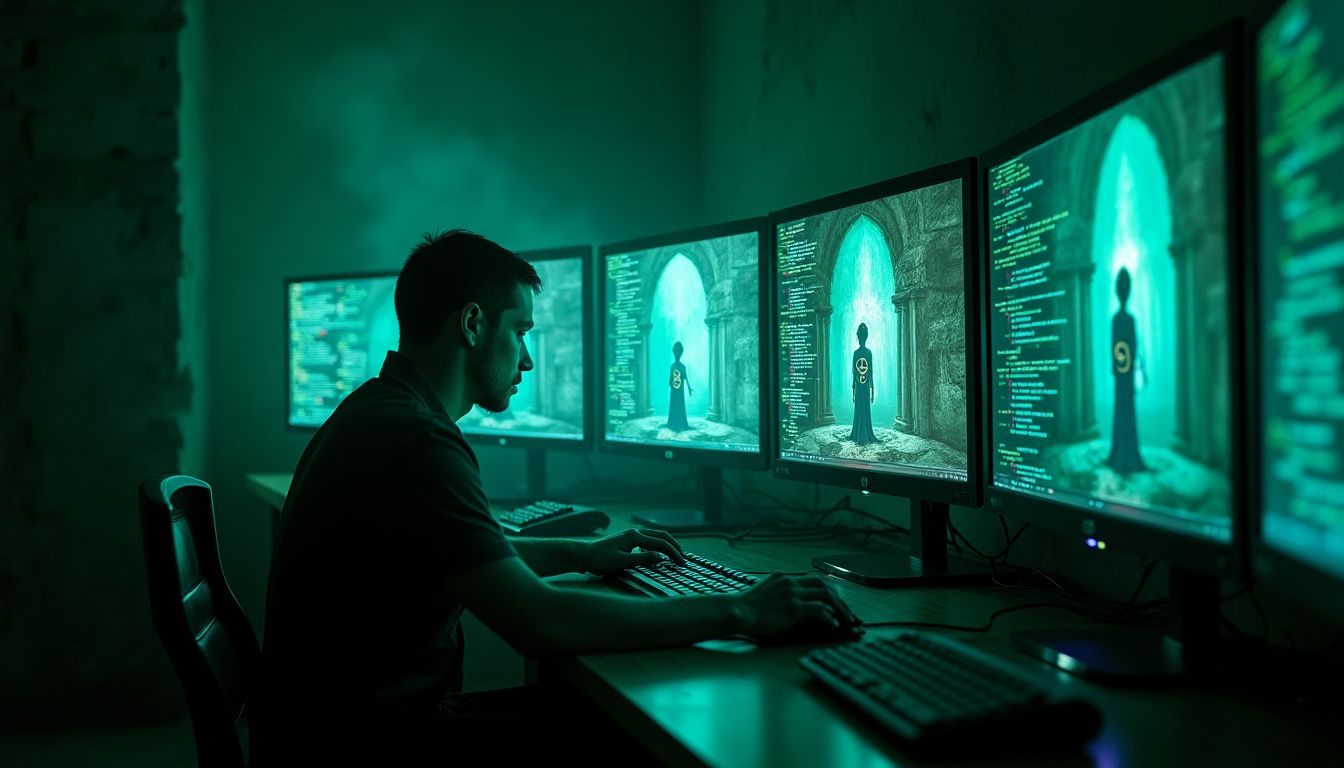 Suddenly, power surged through the basement, lights flickering to the rhythm of something unseen, something ancient. The AI hummed in a sound he had never programmed—something erratic, almost like a pulse.