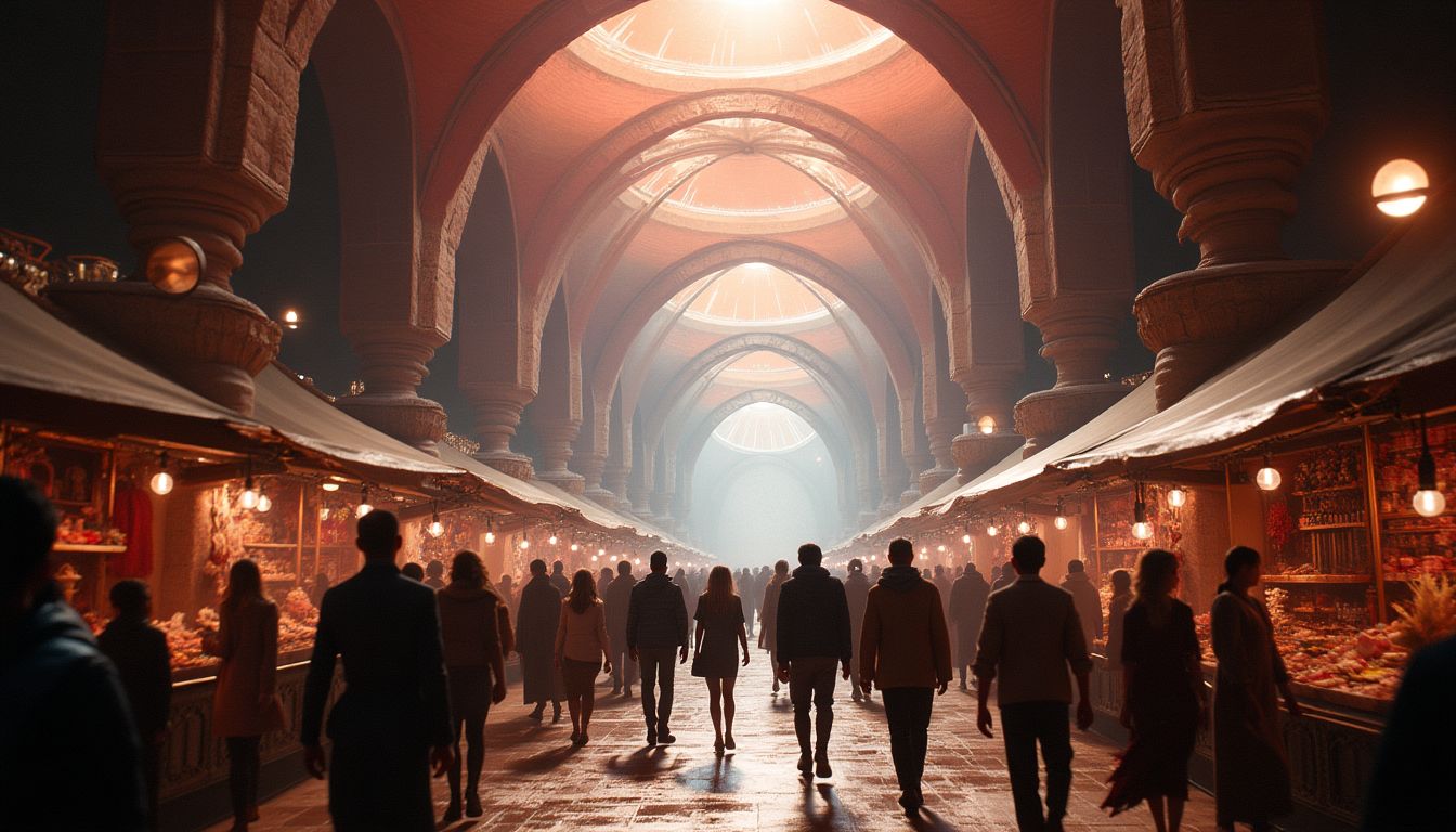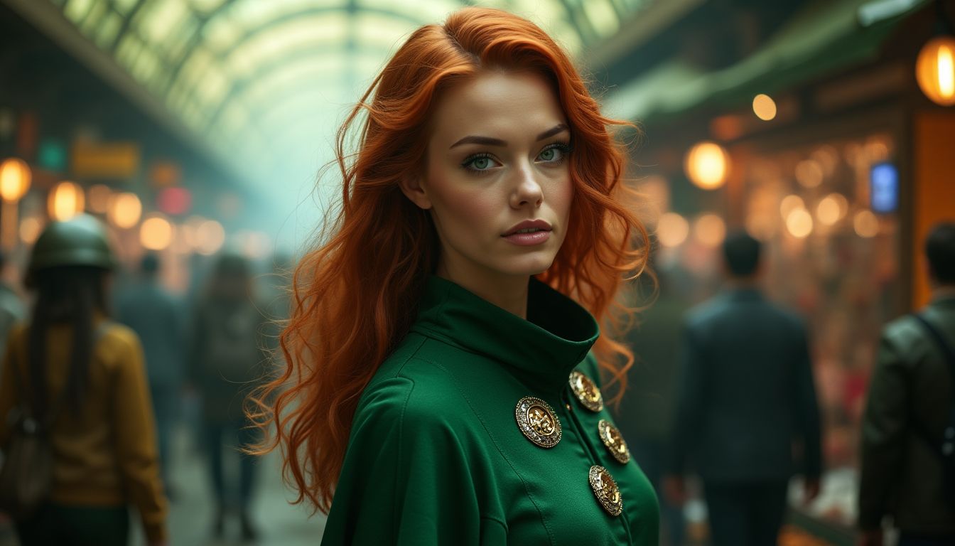 The air hummed with the frequency of silent engines as the translucent domes of Vyena gleamed under the two suns of Andromeda Prime. Mira Eldridge, a former Earth historian turned artifact smuggler, darted through the crowded bazaar, her senses tuned to every sound, every flicker of movement. Her lithe figure, clad in a form-fitting emerald cloak adorned with glistening data-patches, blended effortlessly with the throngs of aliens and humans alike. Her copper-red hair, loose in a cascade of curls, streamed behind her, catching the iridescent light of the marketplace.