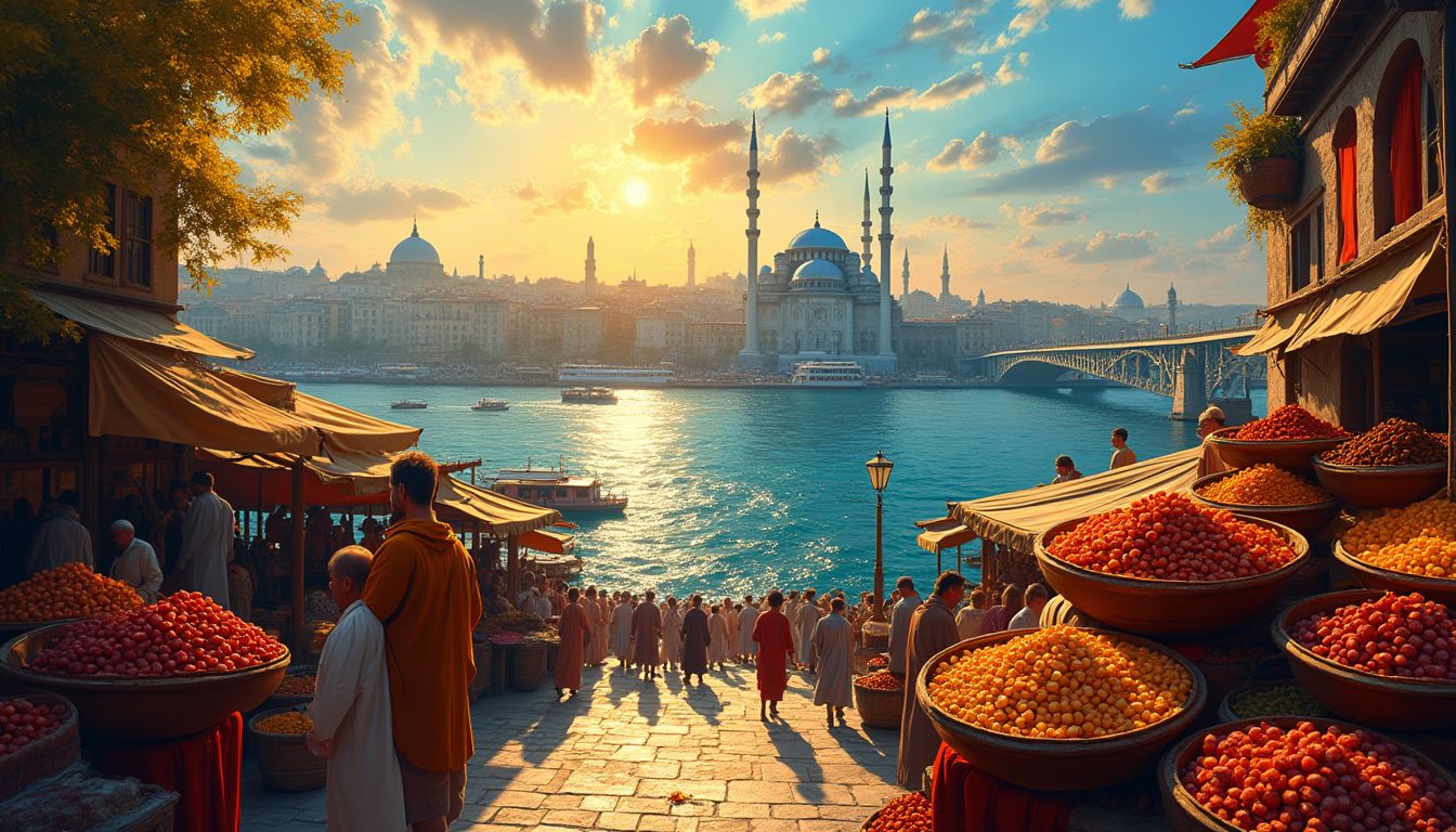 In the year 1273, Constantinople glittered like a beacon, its grand spires piercing the heavens, a glorious epitome of the Byzantine Empire. The warm rays of the sun shimmered upon the Bosphorus, the gentle lapping of the waves whispering to the stones of an ancient world, filled with spirit and intrigue. Among the crowd of merchants and travelers, there was a young male named Leonis, cloaked in a flowing indigo tunic that fell gracefully around his slender frame, intricately embroidered with silver threads swirling like the sea. His dark hair curled around his forehead, accentuating striking emerald eyes reflecting both the beauty and the turmoil of his homeland.