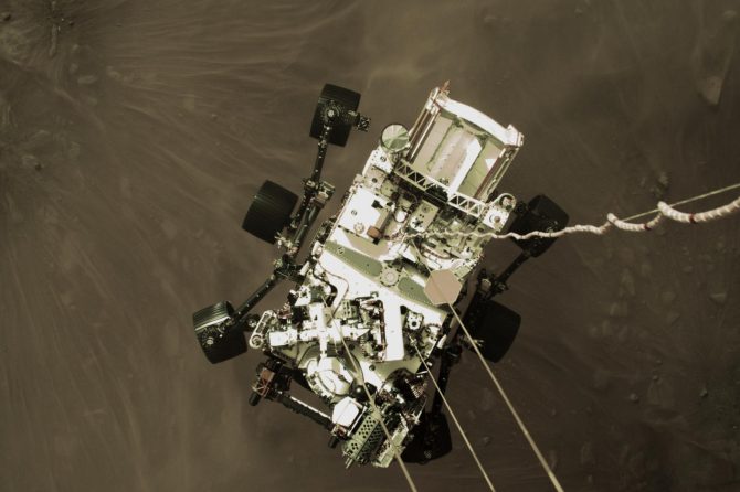 This high-resolution still image is part of a video taken by several cameras as NASA’s Perseverance rover touched down on Mars on February 18, 2021. Source:: Science – Nasa – Image of the day