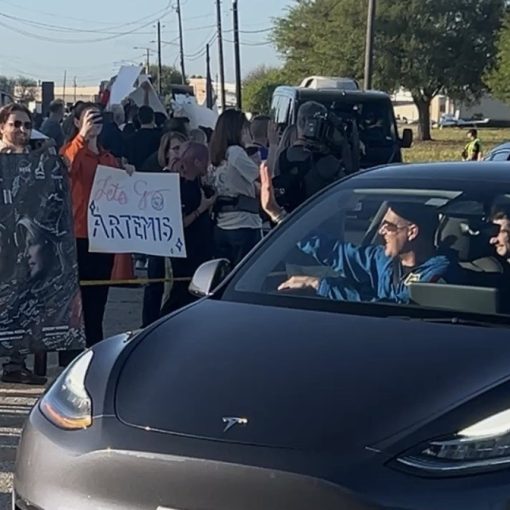 The four astronauts on Artemis II, plus their backup crew members, left Houston from Ellington Airport on Friday morning. NASA employees sent them off with a celebration.