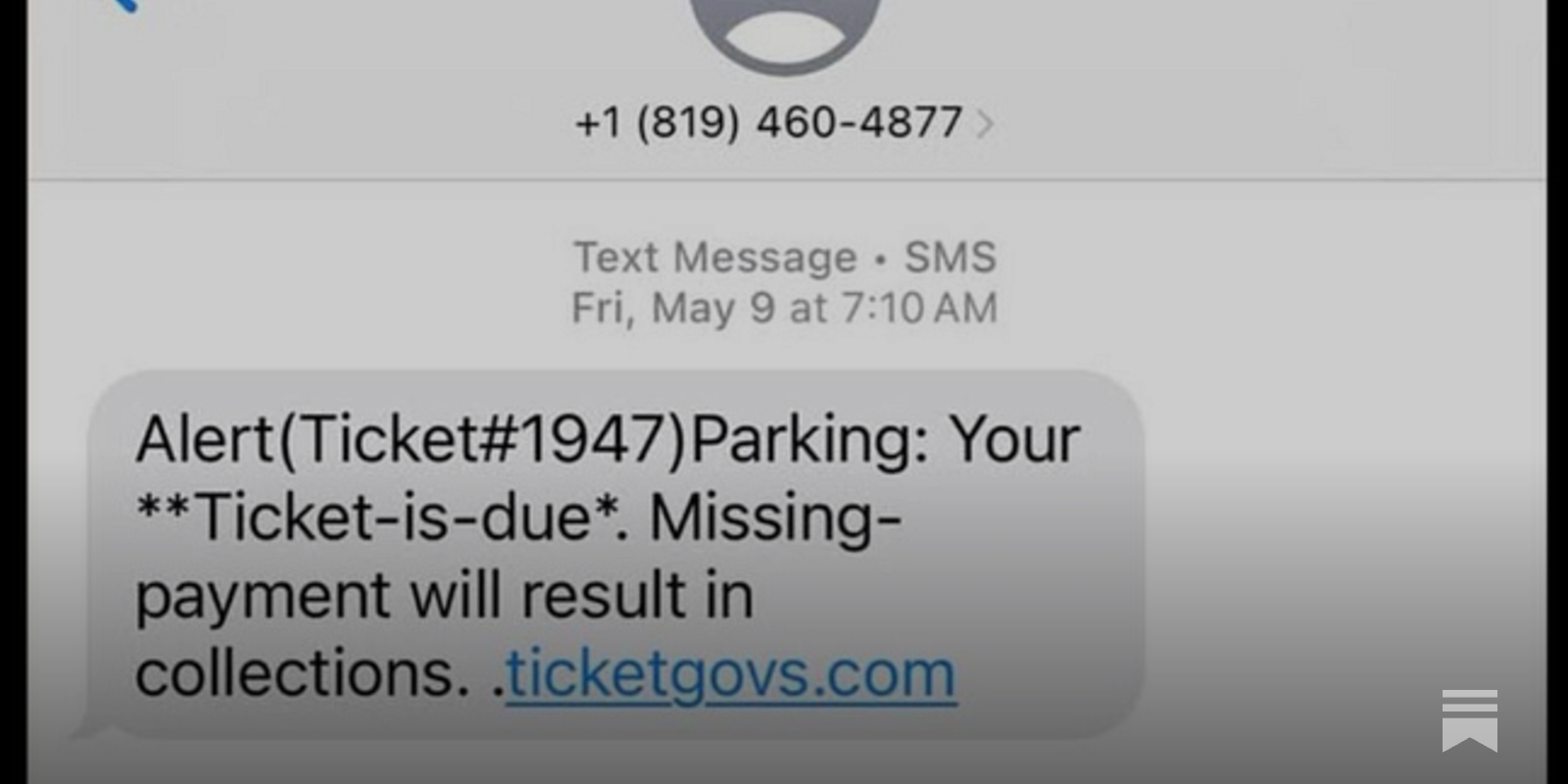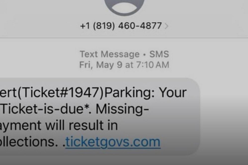 The fraudulent texts purport to tell the recipient that he or she has an outstanding parking ticket and that the fine is due.
