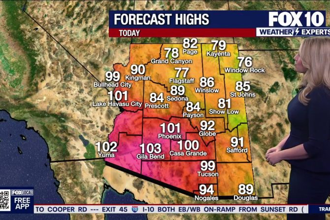 Phoenix March 27, 2026 0 comments on Arizona weather forecast: Record-breaking heatwave continues in Phoenix Arizona weather forecast: Record-breaking heatwave continues in Phoenix We are still in record-breaking territory through Saturday. In fact, today is forecast to reach 101 degrees while the current record sits at 98.