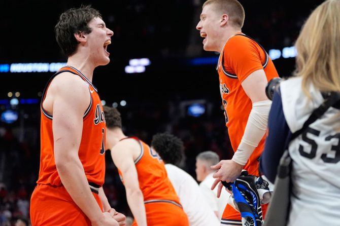 HOUSTON (AP) — David Mirkovic had 14 points and 10 rebounds, and third-seeded Illinois flexed its defensive muscles to eliminate last year’s national runner-up from the NCAA Tournament, beating Houston 65-55 in the South Region semifinals on Thursday night.