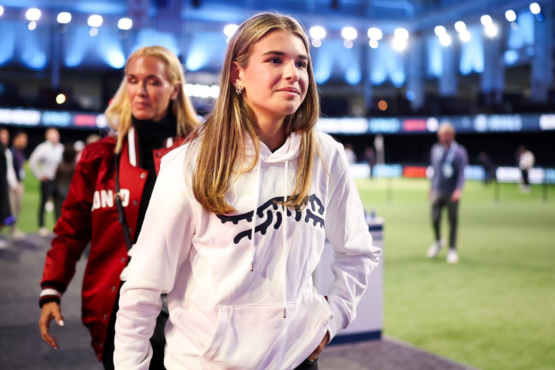 “Vanessa Trump, girlfriend of Tiger Woods of Jupiter Links GC and her daughter Kai Trump talk with Woods before a match against The Bay Golf Club at SoFi Center on March 03, 2026, in Palm Beach Gardens, Florida,” the caption on that Getty Images photo says.